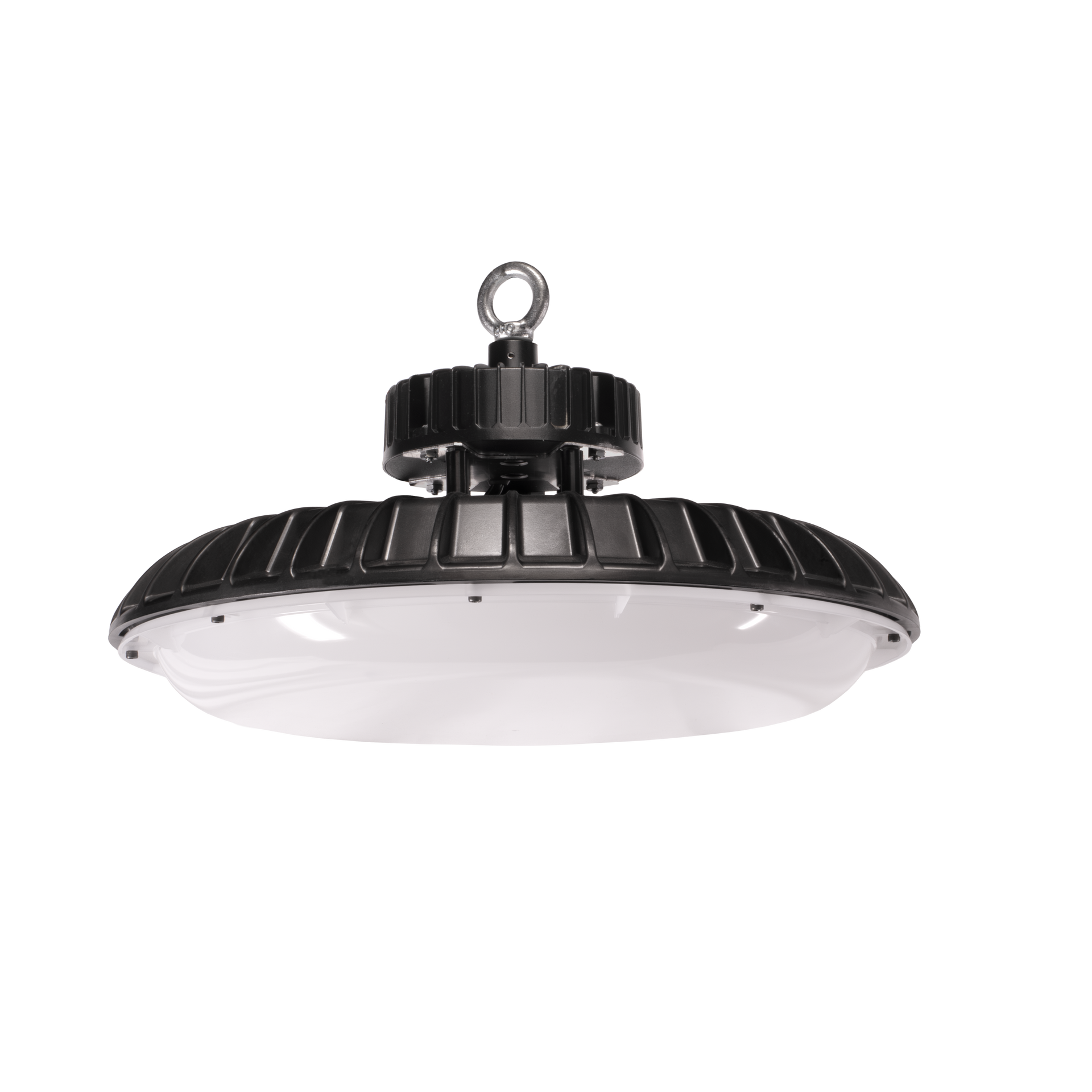 The CircLED™ high bay is a high-performance lighting solution for industrial and commercial use. Constructed from a thermally conductive molded polymer, its design offers a lighter alternative to traditional die-cast fixtures while ensuring optimal thermal management. An IP65-rated fixture protects the unit from dust and water jets, providing long-term durability in environments.